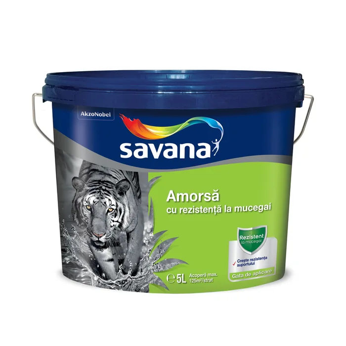 Amorsa pentru pereti cu rezistenta la mucegai Savana este pe baza de rasini acrilice si aditivi. Ofera rezistenta la mucegai, are capacitate ridicata de penetrare in suport, confera permeabilitate suportului, consolideaza suprafata de aplicare si reduce consumul produsului de finisare, asigura un suport aderent, optim pentru aplicarea produsului de finisare, are o aplicabilitate excelenta si uscare rapida.