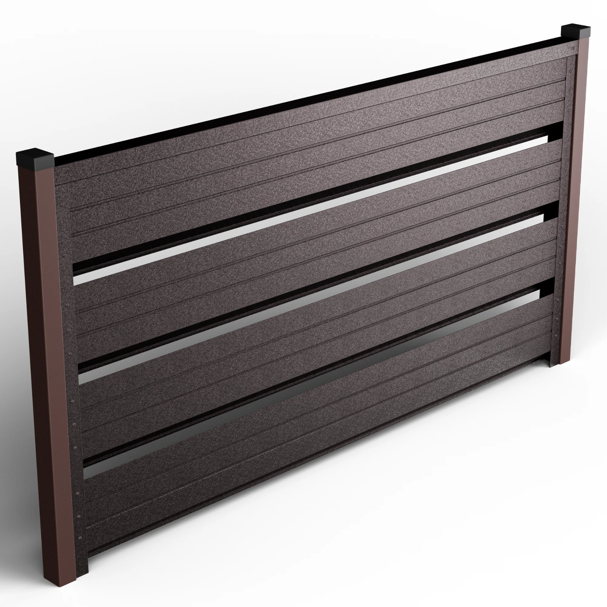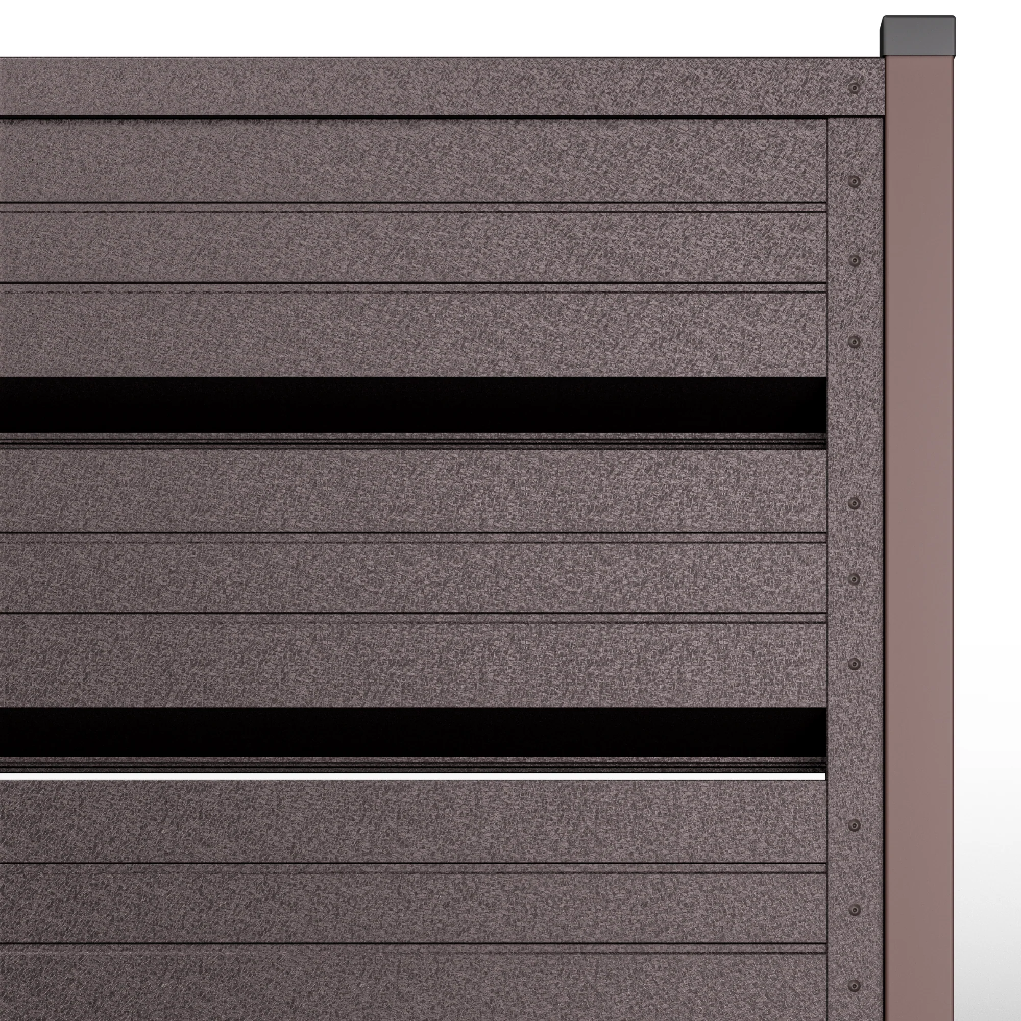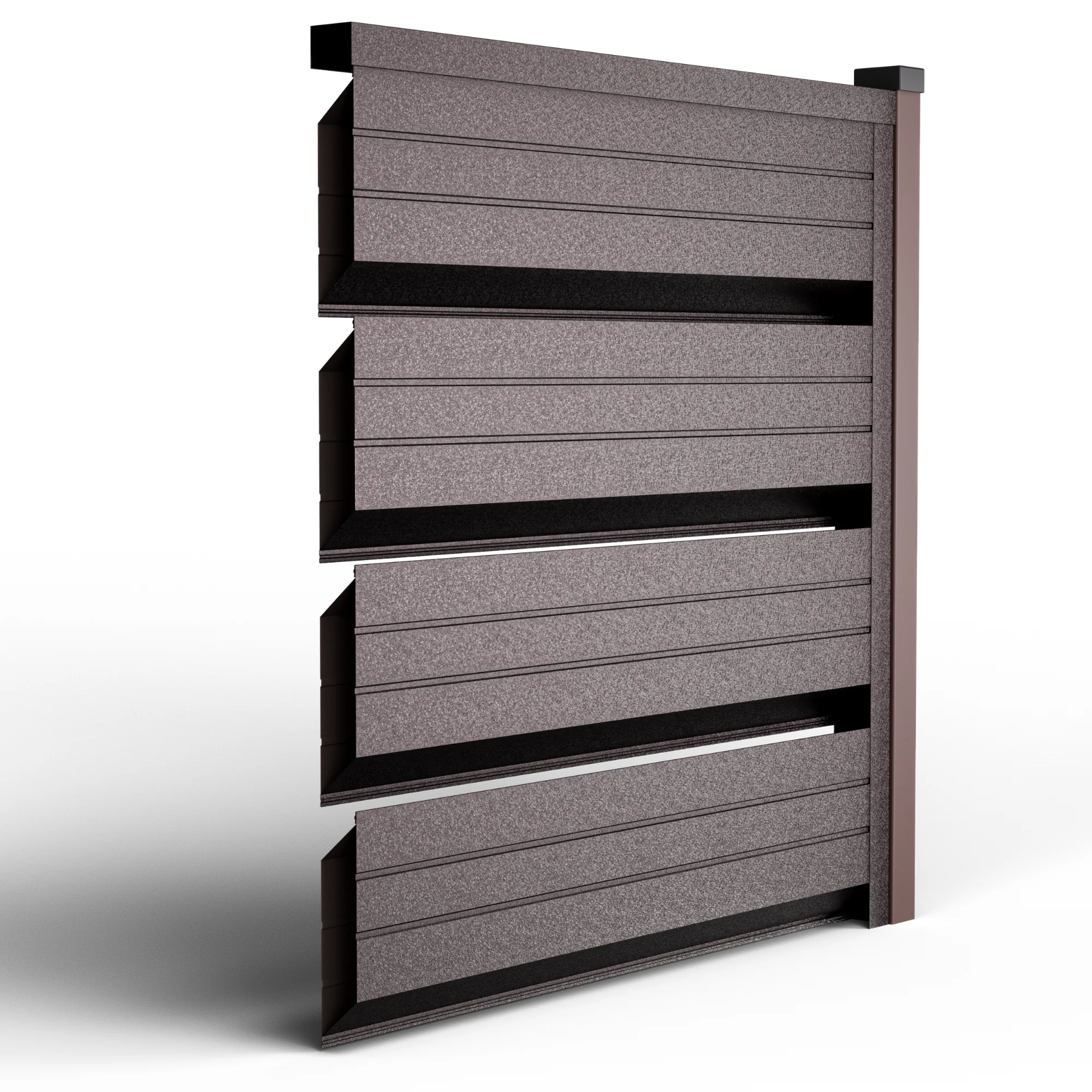 Gardul Romb Grande | Maro Cedru necesită un suport vertical, precum stâlpi metalici, din beton sau cărămidă. Nu se montează liber, iar fixarea se face prin profilurile „U” laterale. Acestea sunt pre-găurite din fabrică, la distanțe egale, ghidând poziționarea casetelor pentru un aspect uniform și ventilare optimă. Casetele nu sunt pre-găurite, pentru a permite adaptarea exactă la poziția stâlpilor, compensând eventualele abateri de verticalitate. Găurirea se face la fața locului, cu ajutorul profilurilor „U” ca șablon. La comandă, se oferă lățimea exactă între stâlpi, fără să fie necesar să adaugi marje – toleranțele sunt deja integrate în sistemul de prindere. Gardul este compatibil cu rame de porți, cu condiția ca interiorul ramei să aibă cel puțin 5.5 cm, pentru a încorpora complet profilul „U”.