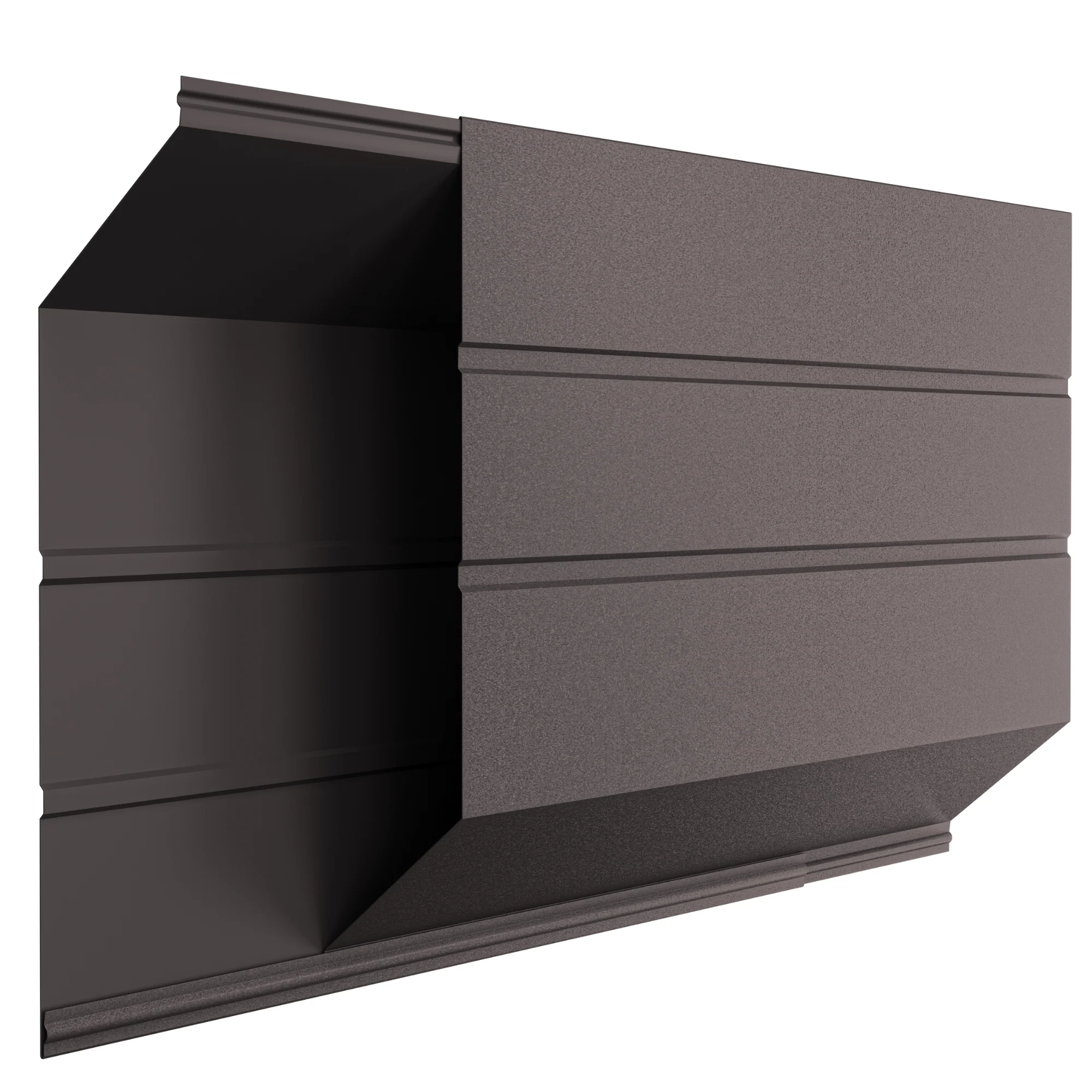 Gardul este realizat din tablă de oțel galvanizată la cald, pe ambele fețe, pre-vopsită și acoperită cu un strat protector de polimer, pentru o rezistență excepțională la intemperii, raze UV și uzură. Grosimea materialului este de 0.45 mm, cu o greutate per panou între 15–35 kg (în funcție de dimensiuni). Înălțimea fiecărei casete este de 26.6 cm, iar panoul include toate elementele de fixare: profiluri casetă, profiluri „U” verticale și orizontale, pop-nituri, șuruburi, dibluri, colțari de prindere și distanțiere. Pop-niturile sunt vopsite în culoare asortată cu panoul, RAL 8019 (Maro Închis / Espresso), cu dimensiuni 4 x 10 mm. Profilurile „U” verticale au lățimea de 5.5 cm.