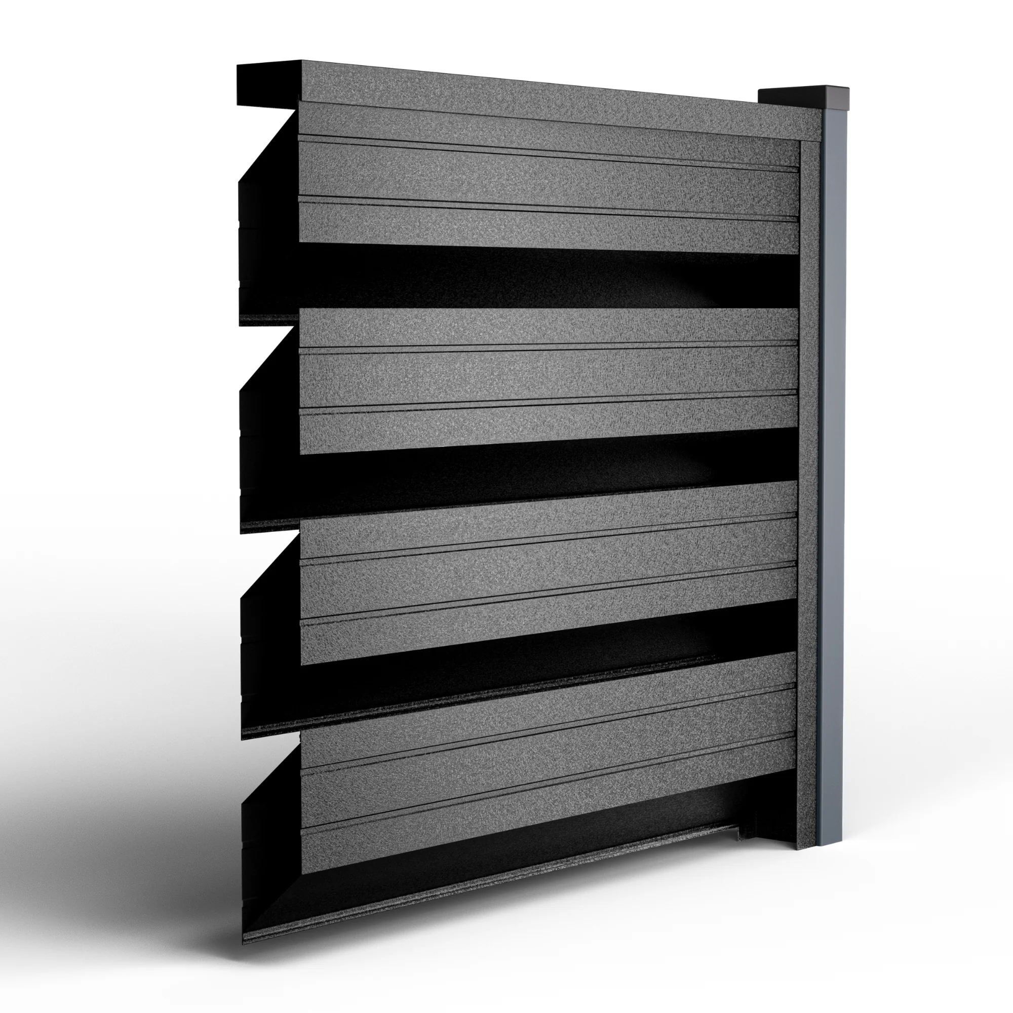 Această nuanță oferă o estetică aparte, fiind una dintre cele mai apreciate alegeri în amenajările arhitecturale moderne. Negrul aduce un contrast puternic și pune în valoare vegetația, finisajele de lemn, piatră sau beton aparent. În plus, oferă un nivel sporit de intimitate, blocând complet vizibilitatea din exterior. Geometria casetelor permite o ventilație eficientă, prevenind supraîncălzirea spațiilor verzi. Sistemul Romb Max permite instalarea rapidă, alinierea perfectă a panourilor și personalizarea dimensiunilor pentru orice tip de proiect. Nu necesită întreținere, nu ruginește, nu se decolorează și nu necesită revopsire.
