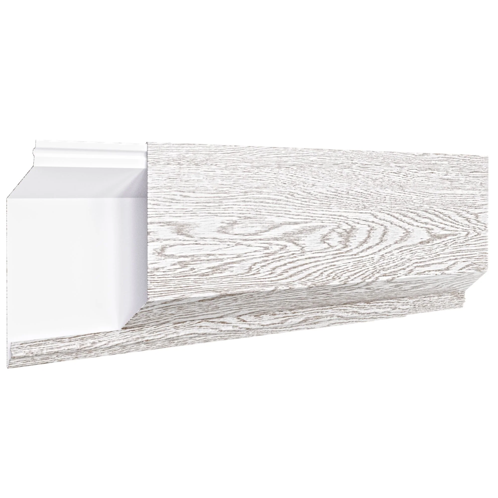 Modelul este realizat din tablă de oțel galvanizat cu o grosime de 0.45 mm, protejată pe ambele fețe cu strat de zinc și vopsea polimerică aplicată în câmp electrostatic, în nuanța Stejar Alb. Fiecare panou este format din casete orizontale în formă de romb, cu înălțime de 113 mm. Acoperirea este de înaltă calitate, rezistentă la UV, umiditate și variații mari de temperatură. Materialul provine din Coreea de Sud și este conceput pentru a rezista peste 50 de ani în condiții de exterior. Garanția tehnică este de până la 30 de ani, iar cea estetică până la 15 ani, în funcție de montaj.