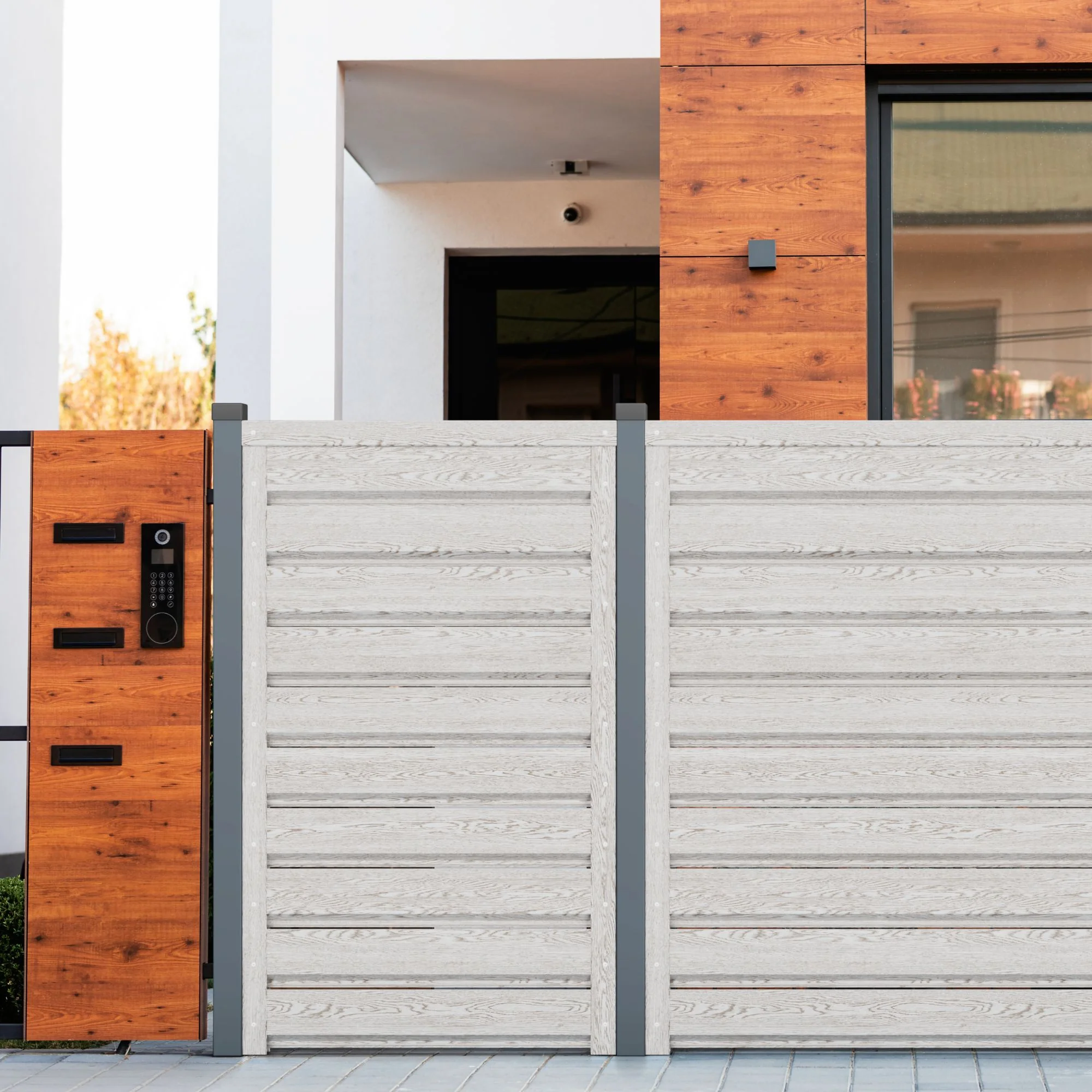 Gardul Stejar Alb aduce un aer curat, modern și deschis împrejurimii casei tale. Este potrivit celor care preferă tonuri neutre și deschise, fără a compromite rezistența sau siguranța. Designul închis al panourilor oferă intimitate și protecție fonică, păstrând în același timp o bună circulație a aerului. Suprafața nu necesită întreținere periodică și nu se decolorează în timp, iar aspectul de lemn vopsit alb rămâne impecabil ani la rând. Se combină excelent cu tâmplărie albă, socluri din piatră gri deschis sau accente decorative pastelate.