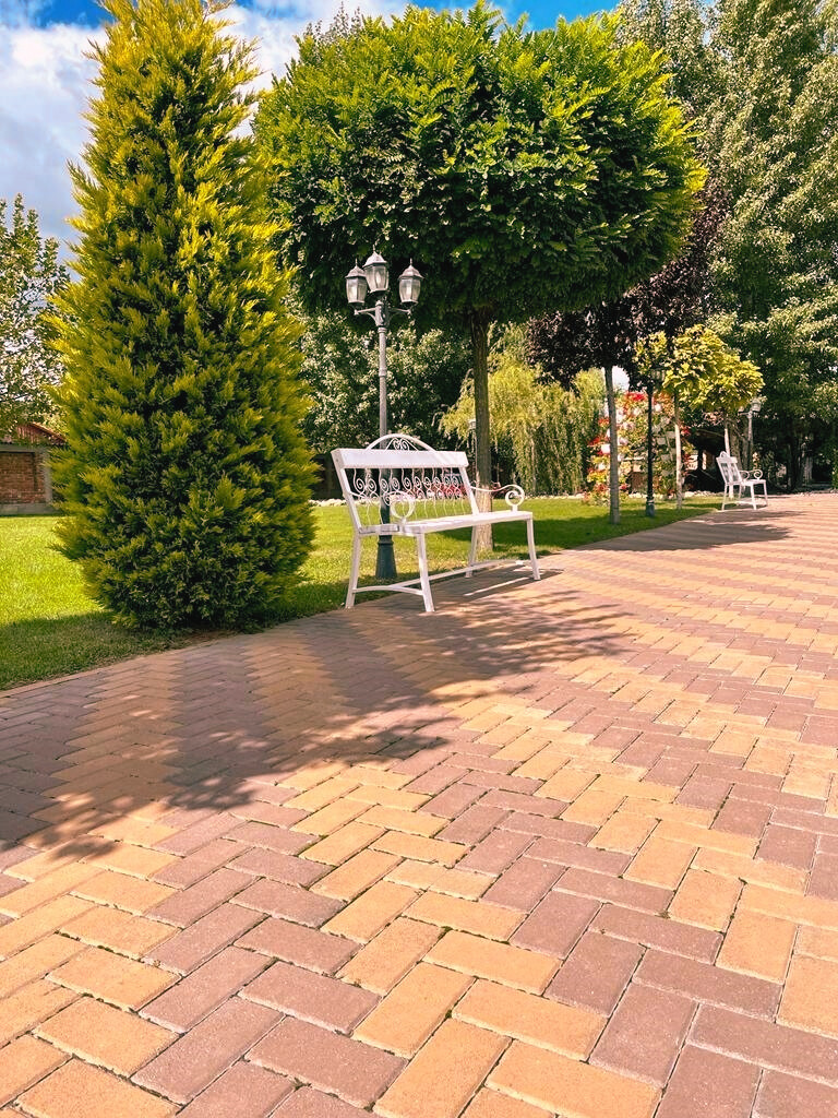 Inspirat din textura și forma parchetului, acest pavaj aduce o notă familiară într-un context exterior. Orange creează accente calde, cu variații subtile de culoare, care evită monotonia și oferă un efect vizual elegant.