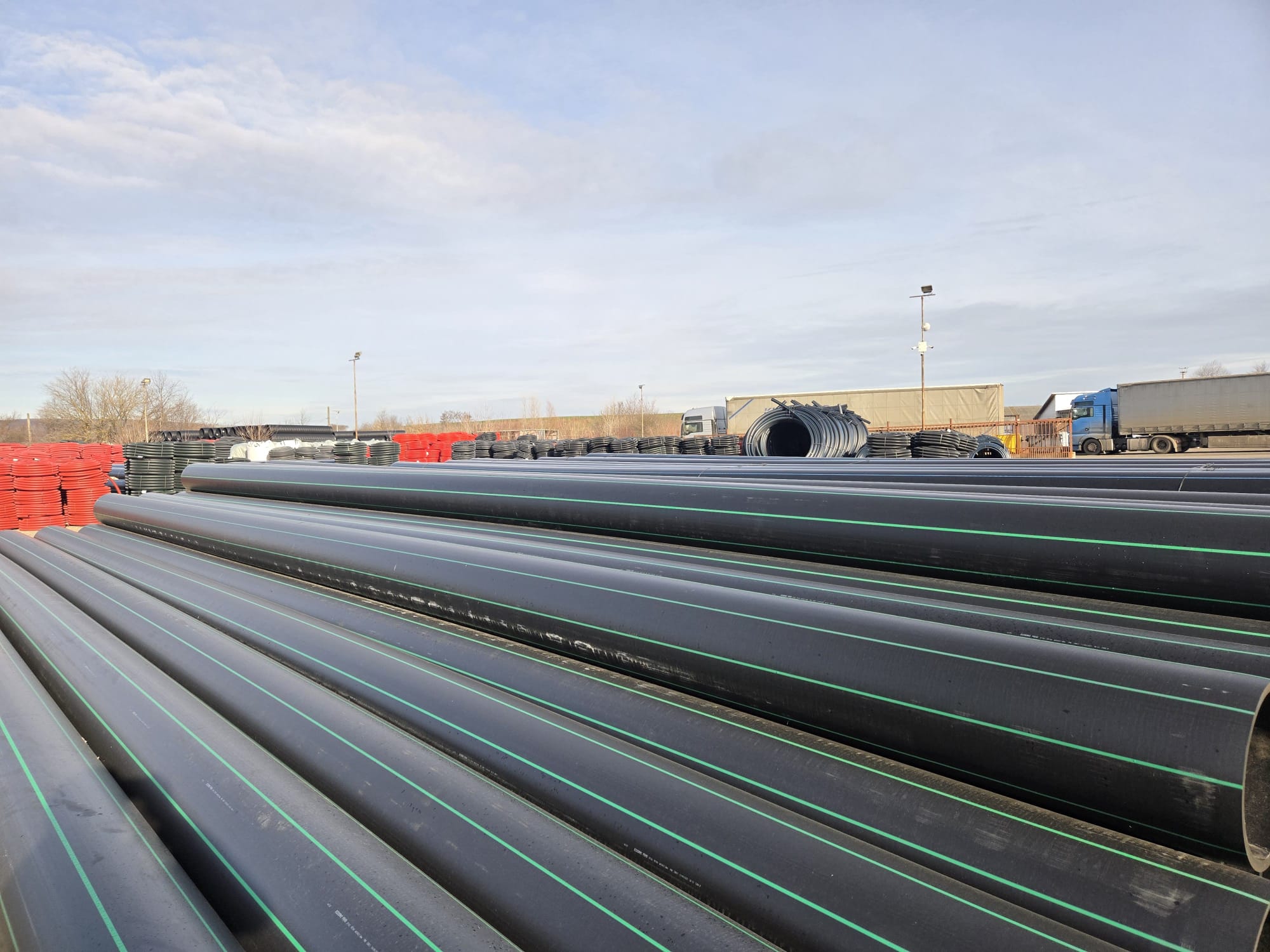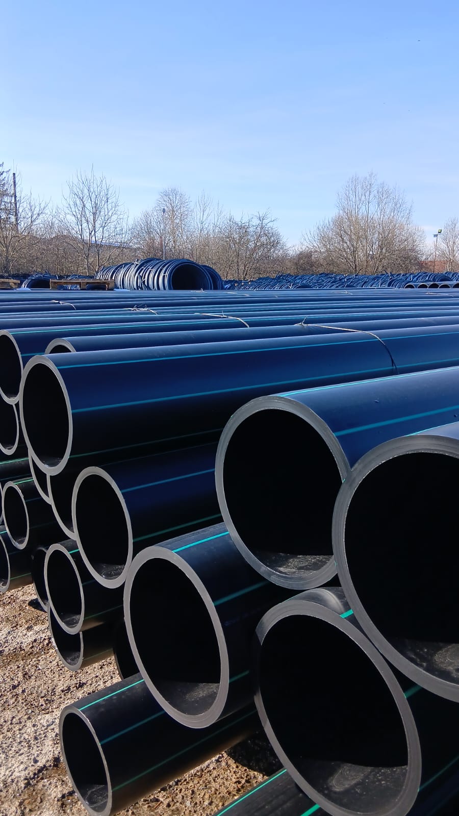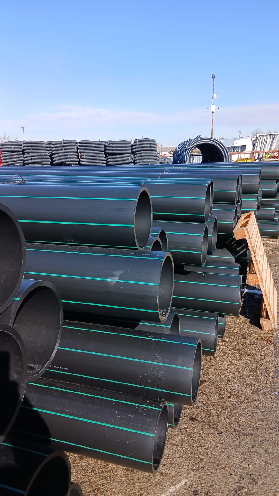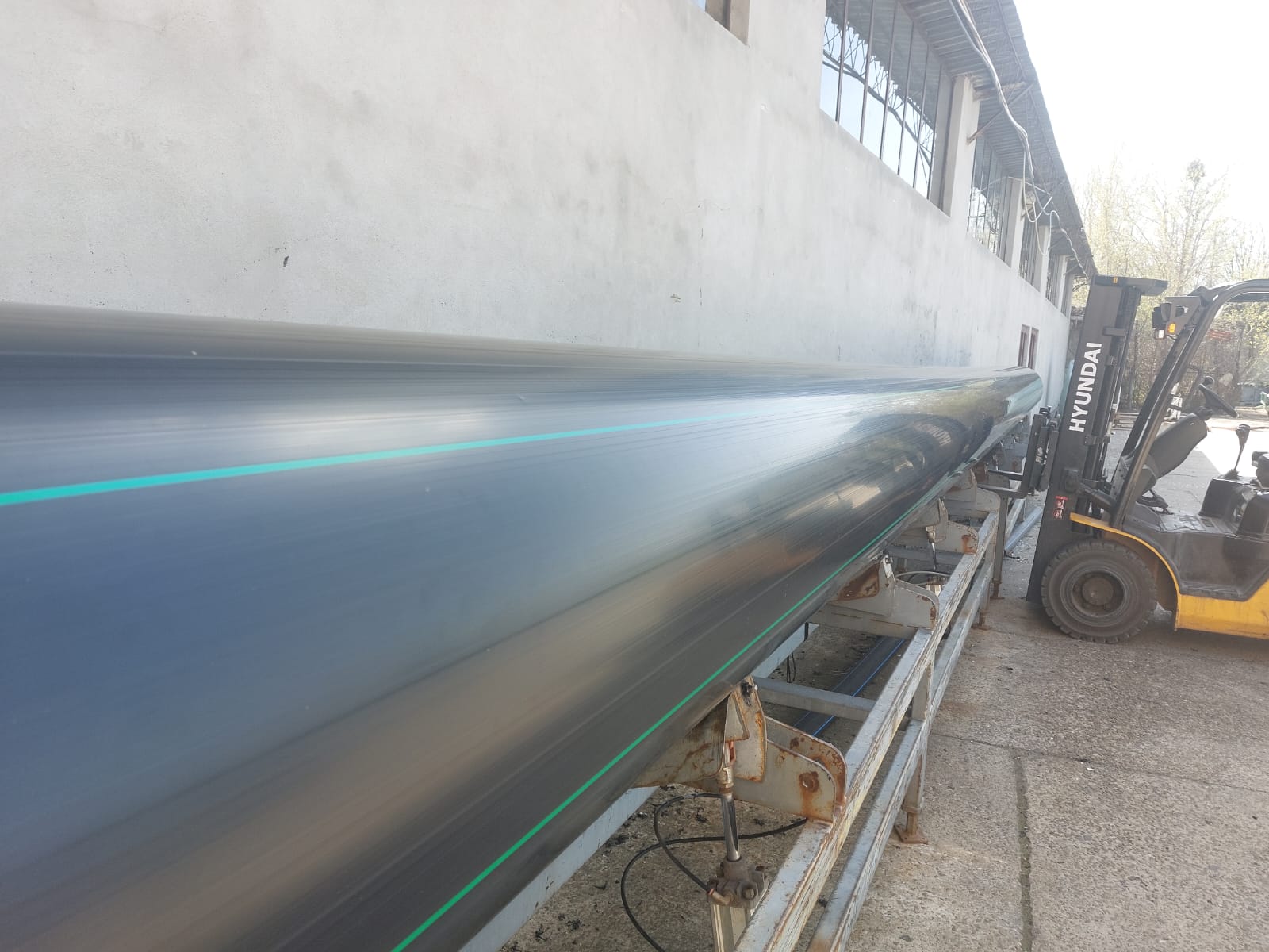 Țeava este realizată din polietilenă de înaltă densitate, clasa PE100, material care oferă o rezistență mecanică superioară, comportament excelent la impact și stabilitate structurală pe termen lung. Acest tip de polietilenă este standardul actual pentru conductele destinate transportului apei sub presiune și în instalațiile industriale sau agricole.