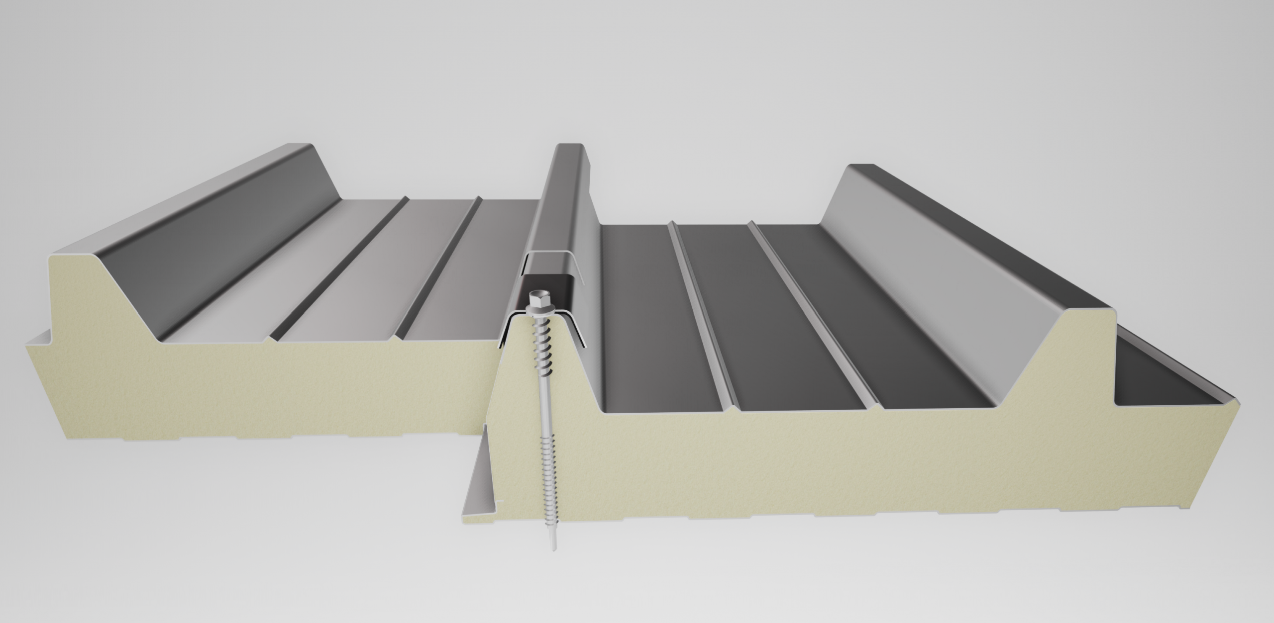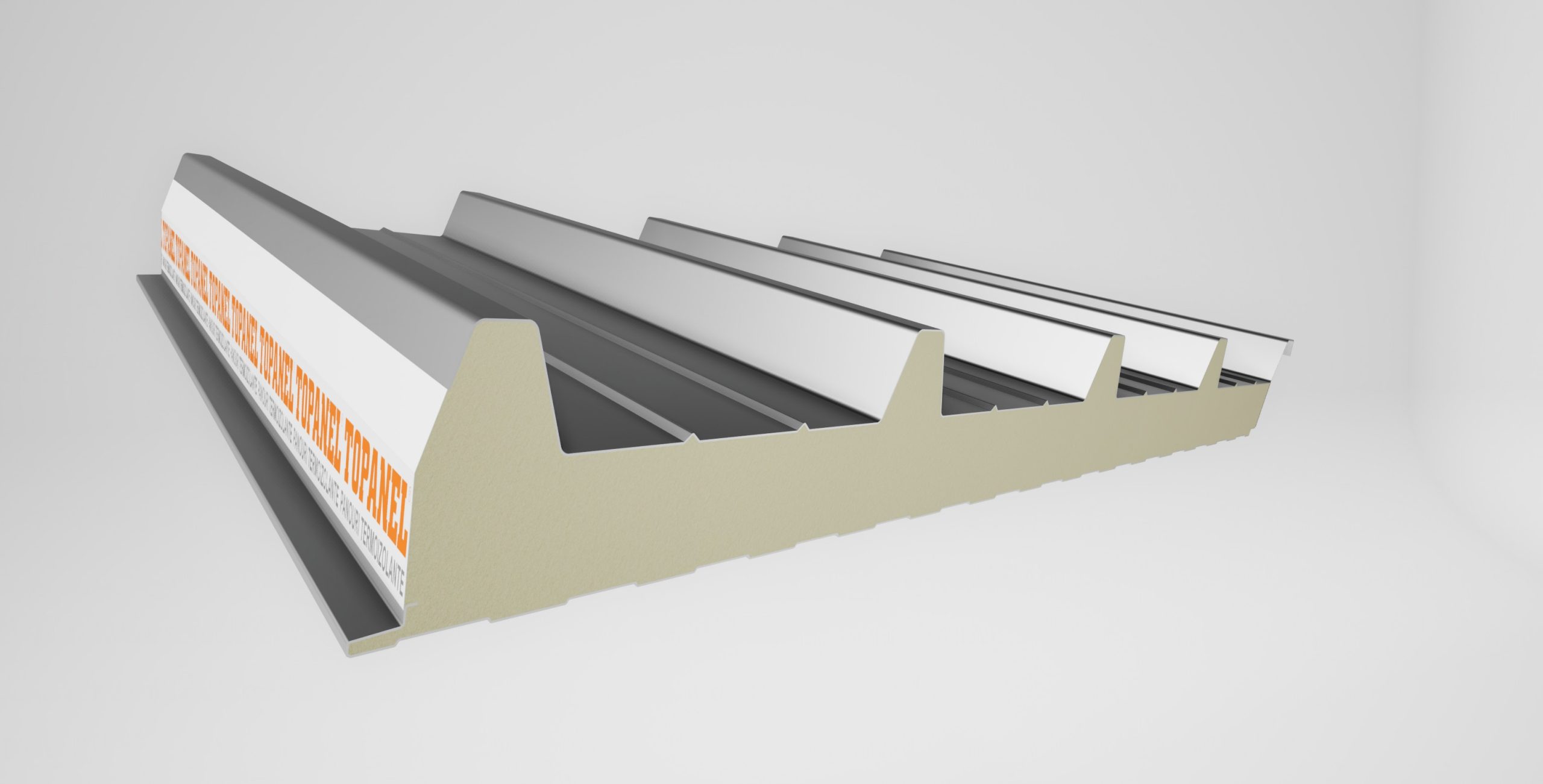 TOP ROOF C5 este un panou metalic de acoperiș cu 5 cute, din gamaTopanel, auto-portant, cu izolație din spumă PIR, destinat acoperișurilor cu o înclinație a pantei de minimum 7%. Fața metalică exterioară a acestui panou termoizolant are o profilatură trapezoidală, asigurând o rezistență sporită la încărcări permanente și nepermanente. Poate fi utilizat în orice tip de proiect civil sau industrial.